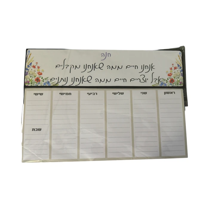 ארגונית שבועית המכילה 48 דפי תכנון שבועיים (כמספר השבועות בשנה),